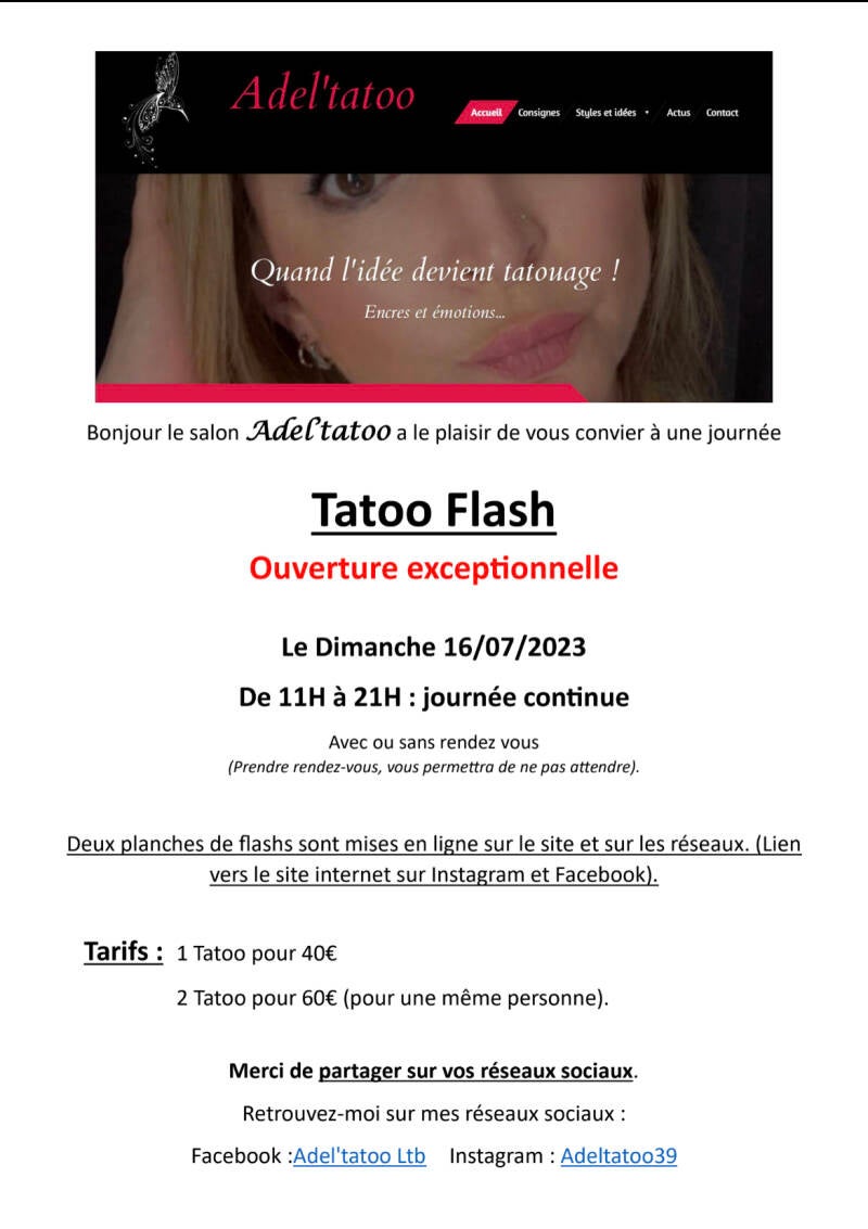 Retrouvez ici toute les actualités proposés par Adel'tatoo, comme par exemple des journées spéciales tatouages flash ou duo...